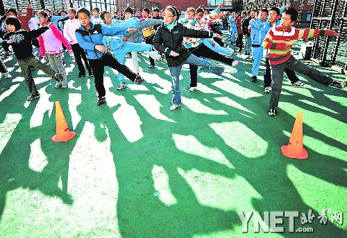 本報報道 今年9月起,第三套學生廣播體操在全國中小學生中啟用、推廣。然而,記者調(diào)查發(fā)現(xiàn),時至今日北京的中小學中全面采用這套廣播體操的學校仍為數(shù)不多,“難度大,不易學”成為該套廣播操迅速推行的“攔路虎”。部分體育老師認為學生難以將動作做到位,會使這套操的鍛煉效果大打折扣。