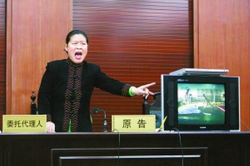 法庭上,高帥的母親向法官出示錄像證據(jù)。