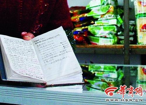 店主仵成翠向記者出示了給學(xué)生記賬的小本子,上面密密麻麻記錄了多名小學(xué)生賒賬的數(shù)額,但沒(méi)有具體名目!拔乙矝](méi)有辦法,學(xué)生們都認(rèn)識(shí)我,一下課到店里搶著買(mǎi)東西,主要是小吃和學(xué)習(xí)用品,賬都是他們自己記下的,有的學(xué)生還從我這里借現(xiàn)金!