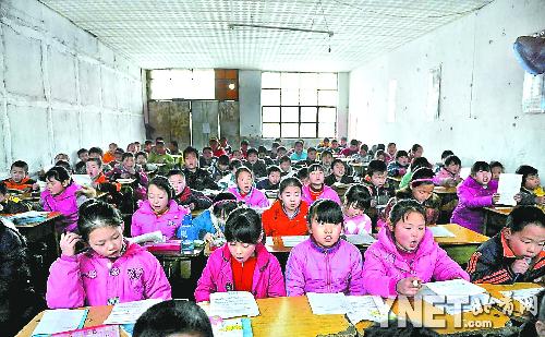 撩開六年級教室的門簾,里面的景象讓記者吃驚:教室里密密麻麻坐滿了學(xué)生,頭排課桌與黑板的距離不到1米。要想走到教室里面去,像記者這樣的成年人甚至只能側(cè)身而過。