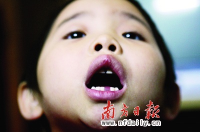 當日傍晚6時許,白英琴將珊珊從幼兒園領回家,“她沒有太多話,回到家我做了她喜歡吃的肉,可她怎么也不張口吃飯。”當白英琴讓珊珊張口,試圖喂她吃飯時,發(fā)現(xiàn)珊珊下排門牙不見了(如圖,楊曦攝)。