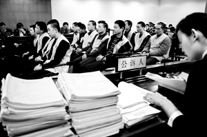 昨天8時50分,押送著黃偉、操雙全等13名犯罪分子的3輛警車陸續(xù)抵達海淀法院。 整個庭審持續(xù)了近2個小時,擺在公訴人面前的,是兩大摞犯罪嫌疑人的證據材料。記者數了數,本案的起訴書就有25頁之多。在大量證據面前,所有犯罪嫌疑人均選擇認罪。