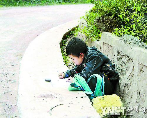 一條蜿蜒崎嶇的鄉(xiāng)村公路邊,一名小男孩佝僂著身體,趴在水泥公路路沿上奮筆寫著作業(yè)。即便有車輛經(jīng)過,他也不為所動,眉宇間透出的認真勁,讓人無不為之動容并心生別樣情愫。這是網(wǎng)友“情緣”3月26日在云陽縣清水鄉(xiāng)一條鄉(xiāng)村公路拍到的動人一幕。帖子發(fā)到網(wǎng)上,引起了網(wǎng)友對這名小男孩的生存狀況的關(guān)注。