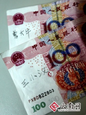 在農(nóng)業(yè)銀行某營業(yè)點(diǎn)就職的吳女士介紹,平時(shí)工作中經(jīng)常會(huì)接觸簽有各種各樣名字的人民幣,有許多還是鋼筆和圓珠筆寫上去的,擦都擦不掉,這些大多都是一些學(xué)校收上來的。