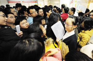 今年北京高校畢業(yè)生數(shù)量達21萬,僅研究生數(shù)量就達到5.7萬。另外,目前檔案滯留在高校就業(yè)指導中心的往屆畢業(yè)生檔案達到兩萬余名。按照有關(guān)規(guī)定,滯留時間超過兩年的畢業(yè)生檔案須轉(zhuǎn)回學生戶籍所在地,從今年起,如果北京生源畢業(yè)生離校時未落實就業(yè)單位,可將戶檔辦理到戶籍所在區(qū)縣的“畢業(yè)生就業(yè)部門 ”,由當?shù)厝耸聞趧硬块T幫助就業(yè)。