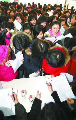 市人事局新聞發(fā)言人張祖德介紹,用人單位對研究生、本科、?茖W歷的要求分別可達42.6%、44.3%和13.1%。今年北京生源將達到9萬人,其中碩士研究生以上學歷的不到1萬人、本科畢業(yè)生有4.4萬人、?飘厴I(yè)生人數(shù)有3.8萬。目前來看,就業(yè)形勢比較嚴峻的主要是?飘厴I(yè)生。自上月以來已經舉行了 150場針對應屆畢業(yè)生的專場招聘會,所提供的8萬余個崗位中已有四分之一達成意向。 RB156