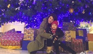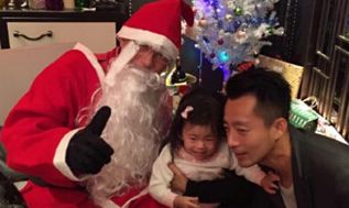 黃奕與女兒圣誕樹下留影