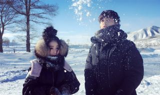 張馨予與男演員撒歡玩雪