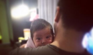 歐弟愛女趴父親肩頭好奇望鏡頭
