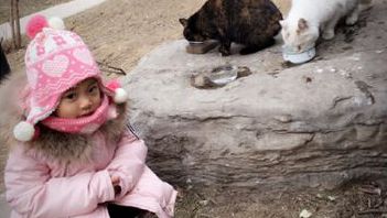 李小璐愛女給流浪貓喂食