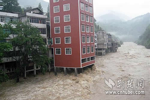 7月13日,有網(wǎng)友向記者反映,恩施州鶴峰縣鐵爐鄉(xiāng)有人把房子建到了河道中,眼下正是主汛期,看著十分揪心。從該網(wǎng)友發(fā)來的照片上可以看到,一幢7層的樓房直接建在了河道當(dāng)中,與周圍兩棟4層白色建筑形成了鮮明的對比,顯得十分突兀。照片里,湍急的河水急速地沖刷著這棟違建房的支柱,水流幾乎沖到了房子的底板上。
