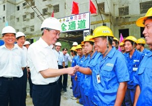 李克強來到正在建設(shè)中的管莊保障性住房項目,看望并慰問一線建筑工人、技術(shù)人員和管理人員,鼓勵他們精心施工、把好質(zhì)量關(guān),把這一重大民生工程建設(shè)好,讓群眾住得安心、舒心。遠(yuǎn)洋地產(chǎn)行政總裁李明在現(xiàn)場向李克強匯報了項目進展情況。