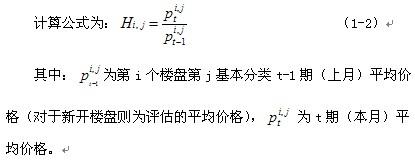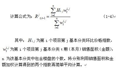 連續(xù)性銷售樓盤和新開樓盤基本分類環(huán)比指數(shù)計(jì)算公式為: