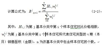 采用雙加權(quán)計算全市各基本分類的環(huán)比指數(shù),即分別利用本月銷售面積和金額作為權(quán)數(shù)計算價格指數(shù),然后將兩個價格指數(shù)再簡單平均。