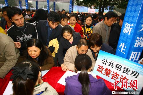 和章程福夫婦情況相仿的數(shù)百名農(nóng)民工把公租房咨詢點(diǎn)圍成里三層、外三層,小小的咨詢點(diǎn)幾乎要被擠爆。咨詢點(diǎn)工作人員介紹,重慶“民心佳園”公租房正在醞釀?wù)酵瞥,不少農(nóng)民工前來詢問其租金和申請流程。咨詢點(diǎn)向農(nóng)民工發(fā)放的公租房宣傳資料上稱,重慶公租房的租金初步定為市場租金的60%,個人收入在2000元以下的人即可申請,申請者不受戶籍限制。
