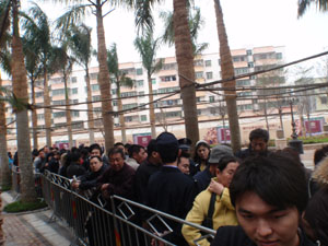 剛來海南不久的吳先生排隊拿號似乎很有經(jīng)驗。他跟幾個朋友提前幾天就聯(lián)系好了幾名農(nóng)民工“排隊”。每個農(nóng)民工200元,從18日晚七八點鐘開始排,排到第二天早上七八點,再來換班親自排隊。盡管如此,吳先生也郁悶不已。原本他以為自己排在比較靠前的位置,但開盤前時,開發(fā)商打開第一道門,里面已經(jīng)排著六七十個人了。