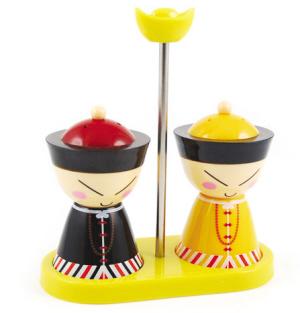 又該做飯了,每天面對(duì)鍋碗瓢盆的“交響曲”,最好能給廚房添點(diǎn)亮色來(lái)增加生活的情趣。這是一款古代古代主題加現(xiàn)代風(fēng)格的調(diào)味瓶,兩個(gè)小人都是調(diào)味瓶,帽子是蓋子,可旋轉(zhuǎn)打開(kāi),可分別放入不同的調(diào)味品。放入家中,絕對(duì)是一款精美的實(shí)用品、裝飾品。