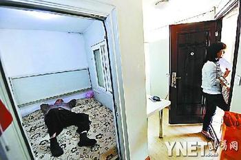 “豪華版”膠囊公寓位于安定門后肖家胡同,是由平房改造的。這個(gè)有72平方米使用面積的房屋本是黃家私房,他花了18萬重建,自己設(shè)計(jì)裝修,建成了可自由組合的四套“豪華”膠囊公寓。走進(jìn)公寓,左手邊是廚房和洗澡間,熱水器、洗衣機(jī)、微波爐等生活用品一應(yīng)俱全。再往里走,左右分別有兩個(gè)防盜門,將房間分成兩個(gè)單元,每個(gè)單元里有一間容納了雙人床的“膠囊”和一個(gè)可單獨(dú)出租的閣樓,“膠囊”外是公共空間,整套房間可以拆成4戶分別出租。