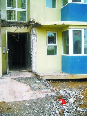 據(jù)媒體報(bào)道,繼上海的“樓脆脆”后,京版“樓脆脆”也已現(xiàn)身——清河萊鎮(zhèn)香格里小區(qū)的11號(hào)樓門(mén)廳下陷,墻上破了兩個(gè)大洞,引起小區(qū)業(yè)主的擔(dān)憂(yōu)和恐慌。今天上午記者在萊鎮(zhèn)小區(qū)的現(xiàn)場(chǎng)看到,塌陷的門(mén)廳已經(jīng)被拆卸。