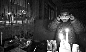 由于停水停電無暖氣,陸大任只能去附近居民家借水,并用爐子燒蜂窩煤取暖。前日,蜂窩煤爐也被相關管理部門收走。陸大任現(xiàn)在24小時在店里,天冷,他就穿上厚厚的軍大衣和棉褲。