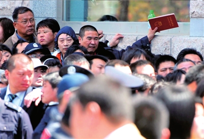 中午時(shí),排隊(duì)的人數(shù)達(dá)到了數(shù)千人?吹角懊孢有幾百人,楊老先生很失望,“這隊(duì)得排到明天去,3個(gè)小時(shí)才往前挪了10米”。他說(shuō),他和家人是看了有關(guān)加強(qiáng)經(jīng)適房管理的通知的新聞后才來(lái)的,“轉(zhuǎn)成商品房后就沒(méi)有那么多限制了,想租想賣都成。而且怕政策收緊,萬(wàn)一以后改要繳納更多的稅費(fèi)呢”。