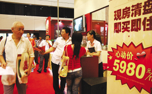 圖:昨日舉辦的首屆蘇州購房節(jié)上,房產(chǎn)商紛紛推出誘人低價。朱子寒 攝