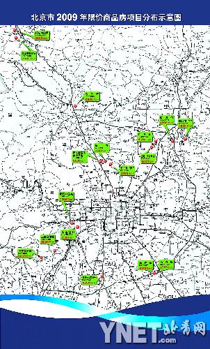 北京市2009年限價(jià)商品房項(xiàng)目分布示意圖(來源:北京青年報(bào))