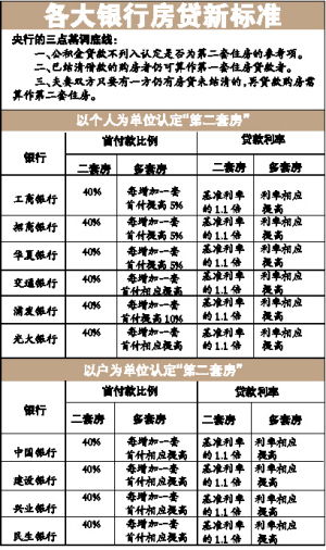 不過,不同的銀行對此規(guī)定有所不同。在已出臺具體房貸細則的銀行中,招行、光大不將公積金貸款列入認定是否為第二套住房的參考項,但華夏、浦發(fā)則將公積金貸款視同貸款,只要有公積金貸款尚未結清,則要執(zhí)行房貸新政。