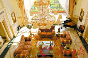 據(jù)介紹,僅僅一些大宅櫥窗柜內(nèi)、茶幾上、西餐廳里一些餐具飾品的擺放總價(jià)值便達(dá)50余萬(wàn)元。在主廳內(nèi),巨型水晶吊燈正下方擺放的長(zhǎng)形餐桌上,一對(duì)看似普通的玻璃杯便價(jià)值近2000元,一個(gè)小小的麥片碗也需929元。而價(jià)值2萬(wàn)余元的300年干邑?cái)R置在茶幾上。連在客廳外側(cè)長(zhǎng)廊上隨意擺放的“夏威夷之夢(mèng)”雕塑也出自名家之手,全球限量29件,價(jià)值近12萬(wàn)6千元。