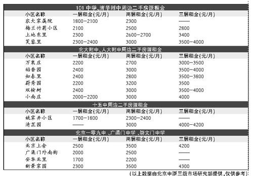 為此,本報特對部分名校周邊重點(diǎn)租賃項(xiàng)目的租金情況進(jìn)行盤點(diǎn),希望能給備考的學(xué)子和家長們予以幫助。(見表)