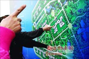 昨日,廣州西子灣限價(jià)房舉行公開選房?jī)x式,市民在規(guī)劃圖上選擇自己的心水房子。本報(bào)記者陳輝攝