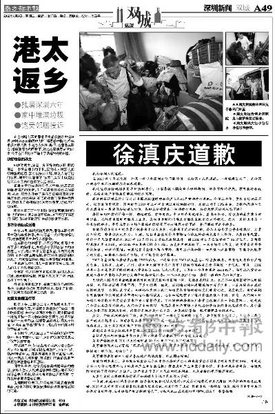“我向深圳人民道歉!痹趶V告中,徐滇慶第一句就是表示要向深圳市民道歉。他在道歉信中表示,“在2007年7月我說過,如果一年以后深圳房?jī)r(jià)不漲的話,我向深圳人民道歉。一年就要過去了,無論深圳的房?jī)r(jià)漲不漲都理應(yīng)由我來道歉!