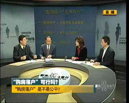 李小萌:歡迎來到正在直播的《新聞會客廳》。金融危機(jī),樓市低迷,手里拿著錢想買房,依然覺得房價過高的購房者著急,開發(fā)商著急,政府也著急,著急就要想辦法,幾天以前,我們在討論購房退稅政策是否可行,是否合理。這兩天我們又看到消息說,廣東省將會成為繼多個城市之后首個實(shí)現(xiàn)購房落戶政策的省份,一時間人們也在討論購房落戶這個政策。今天我們也來湊個熱鬧,今天請到的嘉賓是北京大學(xué)法學(xué)院教授王錫鋅。旁邊一位是北京師范大學(xué)房地產(chǎn)研究中心教授董藩。他們兩位上次在關(guān)于購房退稅政策的時候就是各執(zhí)一詞,爭個不相上下,看看今天觀點(diǎn)是不是會一致。另外我們還請到了媒體觀察員吳定平,也歡迎你。我們先來通過一段短片來了解一下購房落戶政策。