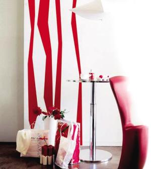 壁紙以一種特殊的紋路、花色及肌理變化,使墻面獲得良好的裝飾效果。除了常規(guī)的鋪貼方法,我們還可以用壁紙做局部裝飾。你可以選擇一些圖案或色彩強(qiáng)烈、肌理效果突出的壁紙來做一下嘗試,比如將壁紙與涂料交叉運用,或?qū)l紋壁紙斜鋪,或選取花卉壁紙中的圖案作為掛畫處理來裝飾墻面,都會取得意想不到的效果。這些手法會使空間更加活躍,俏皮可愛,也充分展現(xiàn)了壁紙的另類風(fēng)情。