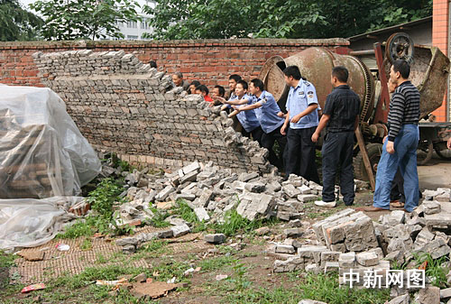 中新網(wǎng)廣安6月2日電(廖小兵 羅義明 張培成)2日上午9時(shí)許,隨著“轟”的一聲巨響,位于四川省廣安市廣安區(qū)北辰辦事處環(huán)城北路8號(hào)福泰居的一堵圍墻砃然倒塌,當(dāng)?shù)赜嘘P(guān)部門聯(lián)合執(zhí)法強(qiáng)制拆除一非法圈地圍墻,群眾拍手稱快。