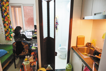 “天哪,13平方米,這房子得坐在馬桶上洗澡!庇芯W(wǎng)友說。許多網(wǎng)友將這種超小戶型戲稱為是“火柴盒式住宅”。22歲、去年才從南郊某高校英語專業(yè)畢業(yè)的大學(xué)生李莉(化名),如今就租住在這個(gè)“火柴盒式的住宅”內(nèi)———建筑面積約13平方米。李莉說,“使用面積可能也就10平方米吧!
