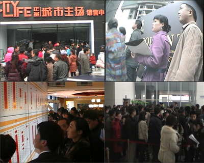 2009年11月28日,星期六的早晨,當很多人還在睡夢中的時候,位于成都市錦江區(qū)的牛沙路已經(jīng)熱鬧起來。今天是這個叫做鎦金歲月樓盤開盤的日子,上午不到8點,購房者就已經(jīng)排起了長龍,浩浩蕩蕩的隊伍一眼望不到邊。而在簽到處,不斷地還有購房者趕來。
