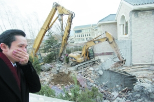 昨日,因接到限期拆除令仍繼續(xù)擴建,百龍老總孫寅貴的違建別墅被海淀區(qū)政府組織人員強拆。