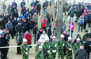 8時許,強拆人員在別墅周圍拉上警戒線,80名城管人員、數(shù)十名民警和其他部門工作人員分散在警戒線周圍維持秩序。
