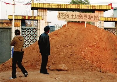 靳先生說,2004年,村里設(shè)置公共汽車站時,將他的土地占用。當(dāng)時,他拒絕領(lǐng)取占地補償款,提出找一塊地進(jìn)行置換,得到了當(dāng)時村委會的認(rèn)可。此事過后已快6年,村委會卻遲遲不兌現(xiàn)承諾。在多次協(xié)商無果后,他才想出堵門的方法解決問題。他說,14日晚,他花錢雇車運來黃土,將土推到村委會正門進(jìn)行封堵。“這樣做不對,但我實在是急了”,他說。