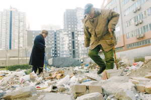 現(xiàn)狀:小區(qū)北門內(nèi)道路堆起渣土堆