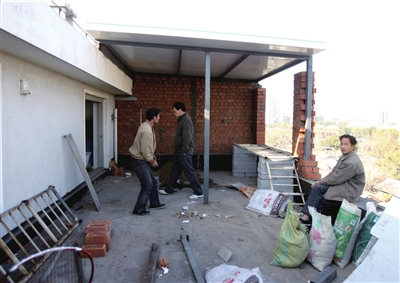 居民薛先生說,9號樓原本6層,樓頂有一個閣樓式的建筑。今年10月底,居民突然發(fā)現(xiàn)有工人往樓頂運砂石料,并在樓上打樁,建起五六間簡易房!吧踔亮璩績扇c鐘還在運料,讓人不得安生!11月13日,有居民在小區(qū)內(nèi)拉起抗議條幅,要求制止這種搭建的行為。購買樓頂?shù)膹埿漳凶颖硎,他以每平方?000余元的價格從開發(fā)商手中將頂樓買下,施工屬于自己家正常的裝修行為,別人無權(quán)干涉。