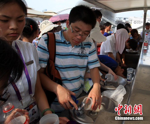 目前,世博園區(qū)共有105個(gè)直飲點(diǎn),其中浦東76個(gè)、浦西29個(gè),可同時(shí)供1568人飲水。氣溫回升和客流量增大,園區(qū)直飲點(diǎn)成為最“火爆”的設(shè)施。