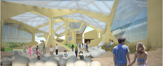 迎接觀眾的第一道自然景觀是海岸,將著重體現(xiàn)對(duì)能源的合理應(yīng)用。這里將向觀眾顯示怎樣通過(guò)利用太陽(yáng)能、風(fēng)能和波浪能等可再生能源,來(lái)提高人們的生活品質(zhì),改善城市地區(qū)的氣候。