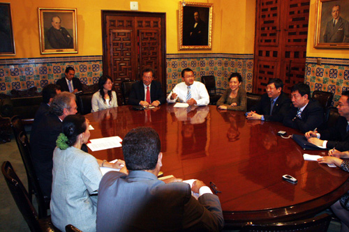 代表團(tuán)隨后與秘魯外交部副部長(zhǎng)岡薩羅·古鐵雷斯(Gonzalo Gutierrez Reinel)、外交部教育文化交流局局長(zhǎng)等秘魯參展上海世博會(huì)事務(wù)的相關(guān)負(fù)責(zé)人舉行會(huì)談,研究秘方和組織者簽約及后續(xù)合作等涉及秘魯參展籌備的具體事宜。古表示,上海世博會(huì)對(duì)于增進(jìn)中秘兩國(guó)友好關(guān)系和人民之間的了解具有非常的積極意義,感謝上海世博會(huì)組織者對(duì)于秘魯參展工作所給予的支持。
