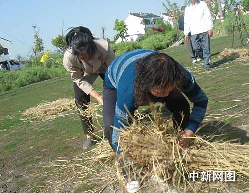 連日來,上海市及各區(qū)縣紛紛舉行各種形式的慶;顒樱佣0一0年上海世博會開幕倒計時一周年。在今天下午的廊下鎮(zhèn)記者看到,一個多由農(nóng)民參加,頗有江南鄉(xiāng)村特色的體育節(jié)拉開了帷幕。據(jù)主辦方介紹,這個名為“健康迎世博”的廊下鎮(zhèn)第二屆鄉(xiāng)村體育節(jié),旨在表達(dá)當(dāng)?shù)剞r(nóng)民希望通過體育運(yùn)動來迎接世博會開幕的心情,同時也為“五一”假期里來此郊游的滬上市民提供一個參與鄉(xiāng)村游戲的舞臺。將持續(xù)至5月3日的本屆鄉(xiāng)村體育節(jié),設(shè)立的十個體育游戲項目,多是從日常的農(nóng)活中提煉而來的,包括捆稻草、插秧、搓跳繩、搶在暴風(fēng)雨前、拋接米袋和運(yùn)磚造房子等,充滿了鄉(xiāng)村野趣。