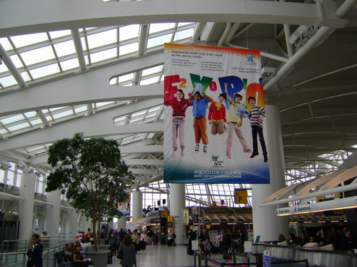 5月14日,從今年4月20日起,上海世博會(huì)公益廣告出現(xiàn)在美國(guó)紐約機(jī)場(chǎng)、美國(guó)洛杉磯機(jī)場(chǎng)、英國(guó)西斯羅機(jī)場(chǎng)、法國(guó)戴高樂機(jī)場(chǎng)、德國(guó)法蘭克福機(jī)場(chǎng)、日本成田機(jī)場(chǎng)、韓國(guó)仁川機(jī)場(chǎng)。在上海世博會(huì)宣傳公益廣告上,不同膚色的孩子們懷抱著世博吉祥物海寶,一張張熱情的笑臉歡迎著五湖四海的人們。