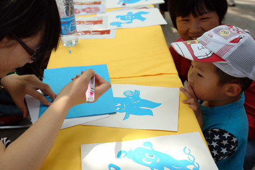 活動(dòng)從早上9點(diǎn)開(kāi)始,每位到場(chǎng)的小朋友均能獲得一個(gè)美麗的風(fēng)車,無(wú)數(shù)的風(fēng)車在晨風(fēng)中不停地轉(zhuǎn)動(dòng),轉(zhuǎn)出一道道亮麗繽紛的色彩。當(dāng)天的徐家匯公園被劃分為6個(gè)版塊,既有“海寶博士”猜謎語(yǔ)、世博知識(shí)500問(wèn)活動(dòng),又有折紙面塑等民間藝術(shù)活動(dòng),引導(dǎo)孩子們剪海寶,折海寶和塑海寶。在親子廣場(chǎng)中,天真的孩童通過(guò)“親子劇場(chǎng)”這一品牌欄目,用兒童劇的形式,演繹對(duì)世博的向往。