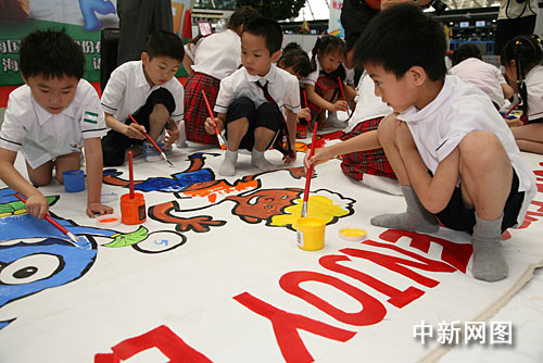 這是浦東機(jī)場(chǎng)積極響應(yīng)上海市文明辦“小手牽大手,共養(yǎng)好習(xí)慣”雛鷹世博文明行動(dòng)的號(hào)召,舉辦的“歡樂童心迎世博”社會(huì)公益活動(dòng),共邀各國(guó)少年兒童關(guān)注世博、了解世博,參與世博,分享世博。