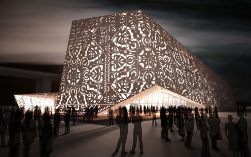 今年3月,世博會波蘭館公布了展館建筑設計方案。根據(jù)設計方案,波蘭館的外觀將猶如折疊的紙張,在設計上融合了波蘭傳統(tǒng)民間剪紙藝術和現(xiàn)代時尚元素,鏤空花紋的剪紙圖案營造出明暗對照的獨特透光效果,在“人類創(chuàng)造城市”的主題下,聚焦城市多元文化的融合以及城市和鄉(xiāng)村的相互影響,傳達出人是現(xiàn)代城市最重要主體和創(chuàng)造者的信息。3000平米的波蘭館將包括展覽區(qū)、表演區(qū)和服務區(qū)等幾個部分,內(nèi)部空間設計富有幾何趣味,包括了一系列斜坡,契合“剪紙”的設計概念,靈活的空間設計如夾層等可以創(chuàng)造性地被分割成不同部分,用作展區(qū)、音樂演出區(qū)、餐廳以及小賣部等。在館內(nèi),參觀者能通過鏤空花紋欣賞到室外照進來的日光和其產(chǎn)生的明暗效果。